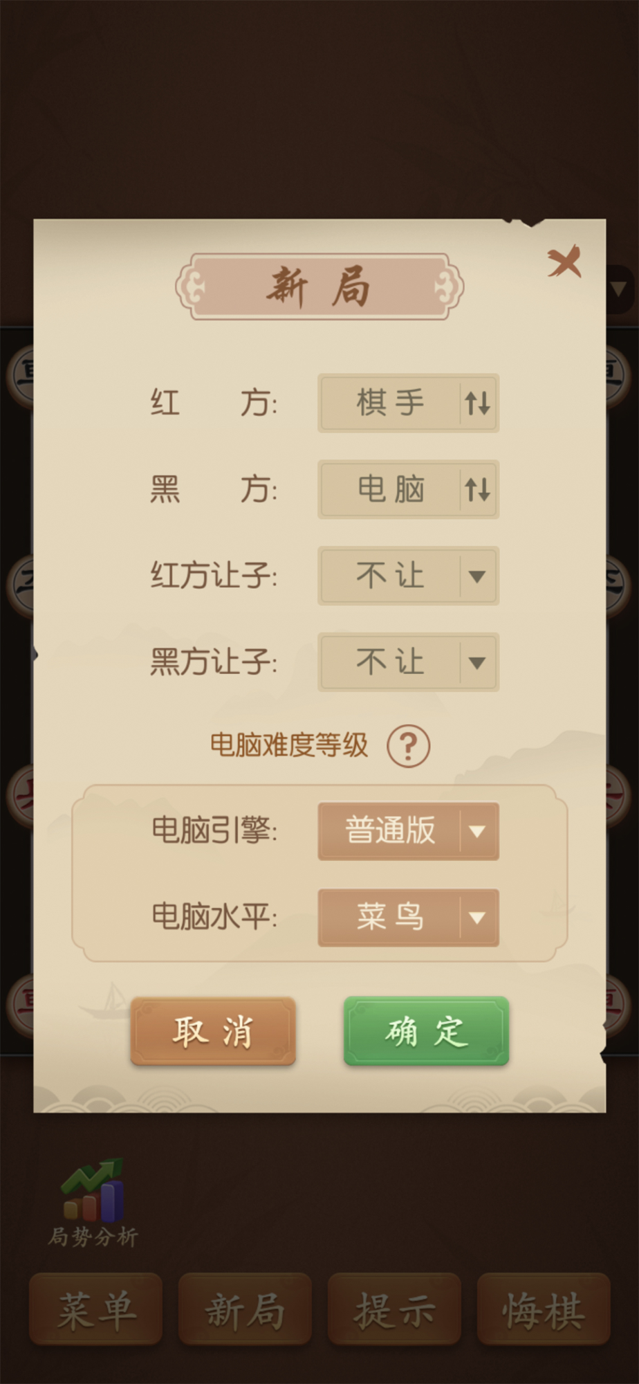 4、人机对弈可选择从新手到大师的多个难度级别电脑,棋力极强,在攻杀凌厉的同时不乏稳重。