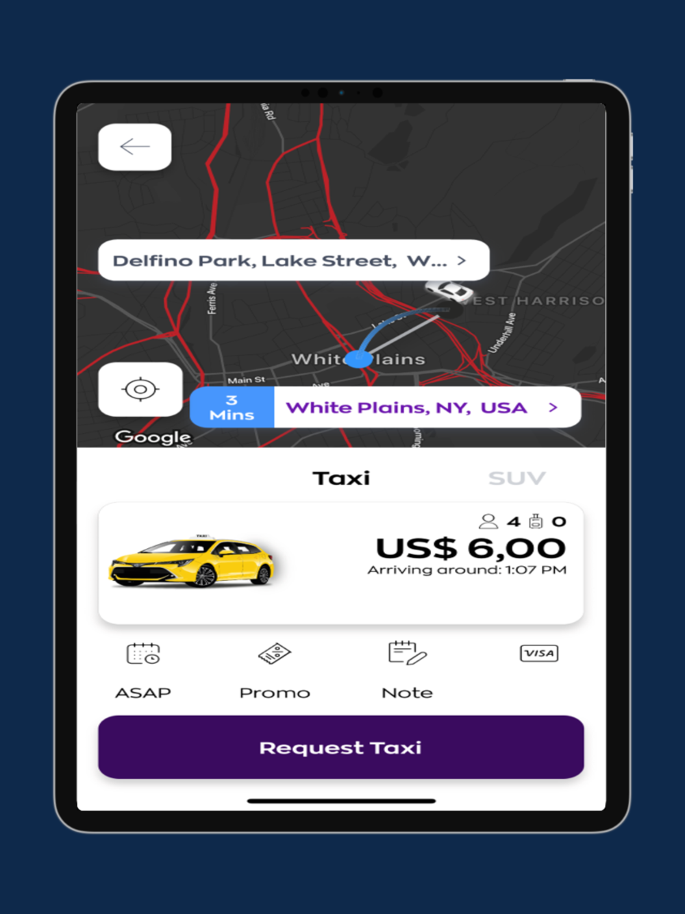 • Order a taxi in White Plains, New York.