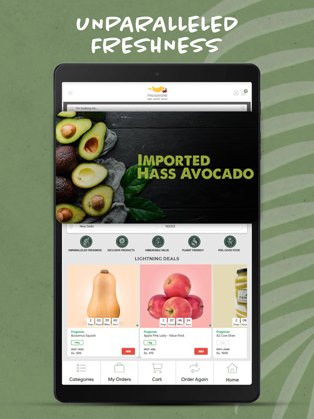 Download Frugivore now and indulge in exclusive discounts on premium groceries!