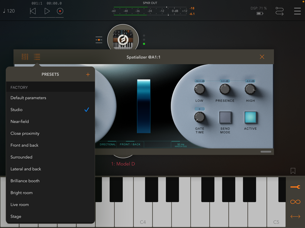 Due to its ability to provide subtle and focused responses, as well as good spectral density characteristics, Spatializer is also suited to be included in master bus effects chains.