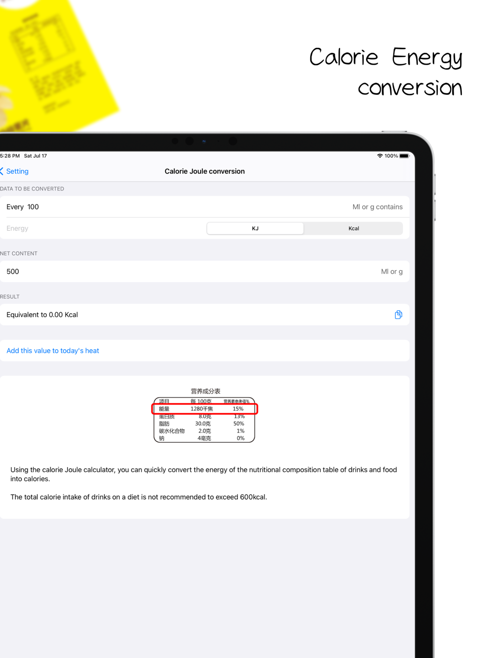 Calorie Joule conversion (the energy on the bottle bag can finally be easily converted)