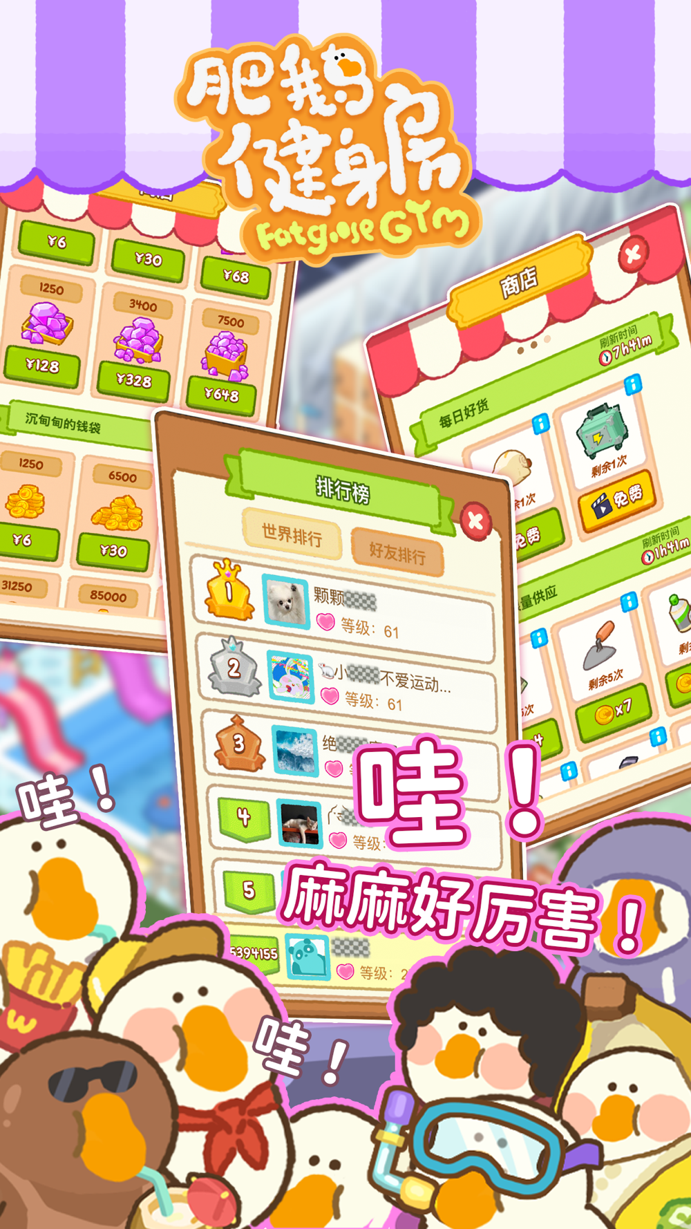《肥鹅健身房》是一款画风可爱的休闲游戏。玩家扮演健身房店长,通过合成玩法获得材料,打造独一无二的健身房,吸引可爱的肥鹅来健身!