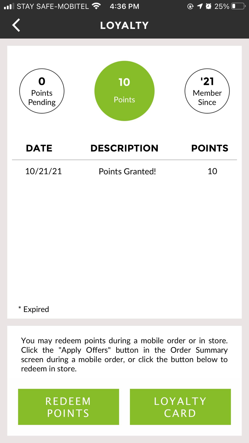 Curbside carryout order or in store pick up.