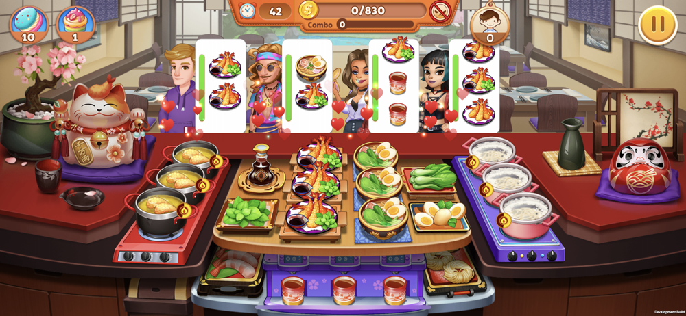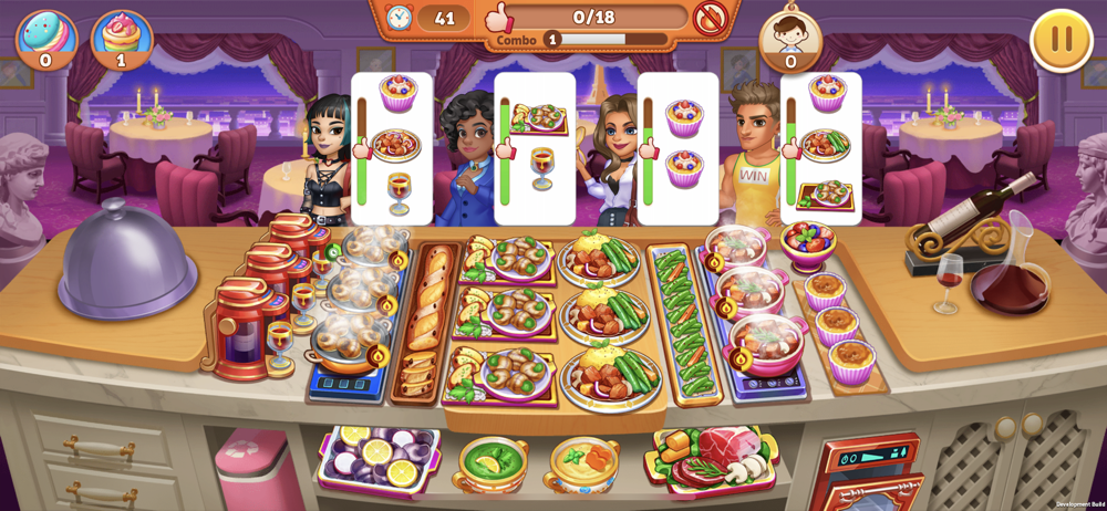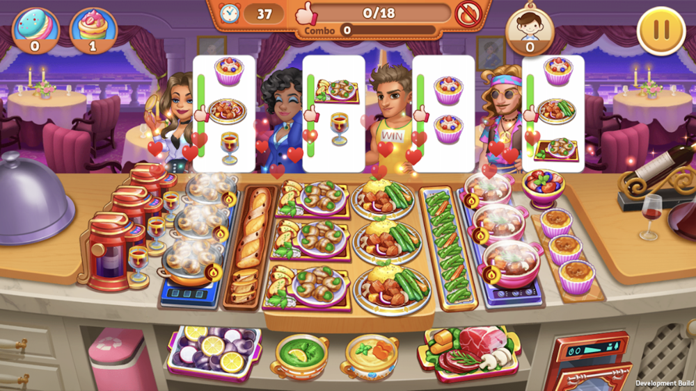 Serve the dishes in one time as quick as possible to play a combo for higher score.