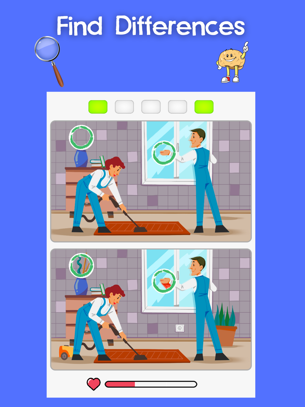 Compare pictures and try to spot the difference between them. Search and find hidden objects. Just like in hidden object game