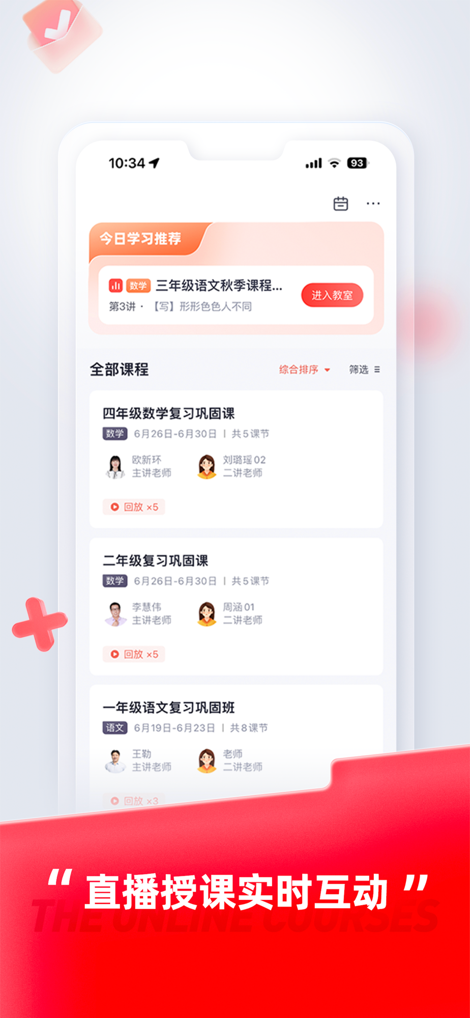 途途课堂采用“授课+辅导”的在线直播双师模式,主讲老师直播授课,讲解核心知识点,二讲老师辅导伴学,为孩子答疑解惑。