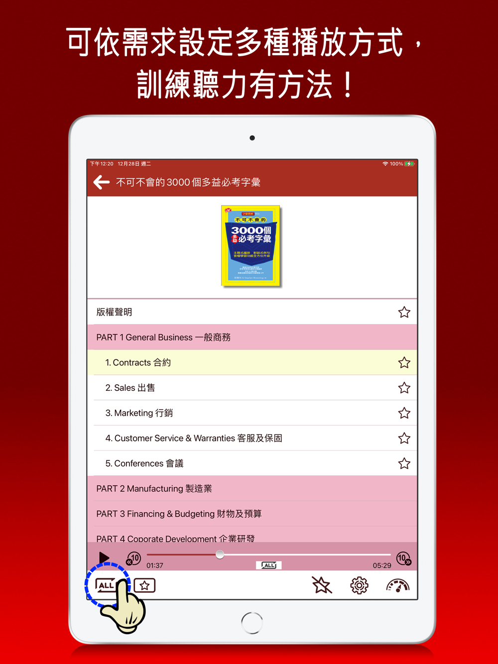●透過本App,可下載每本書的音檔,即點即播。