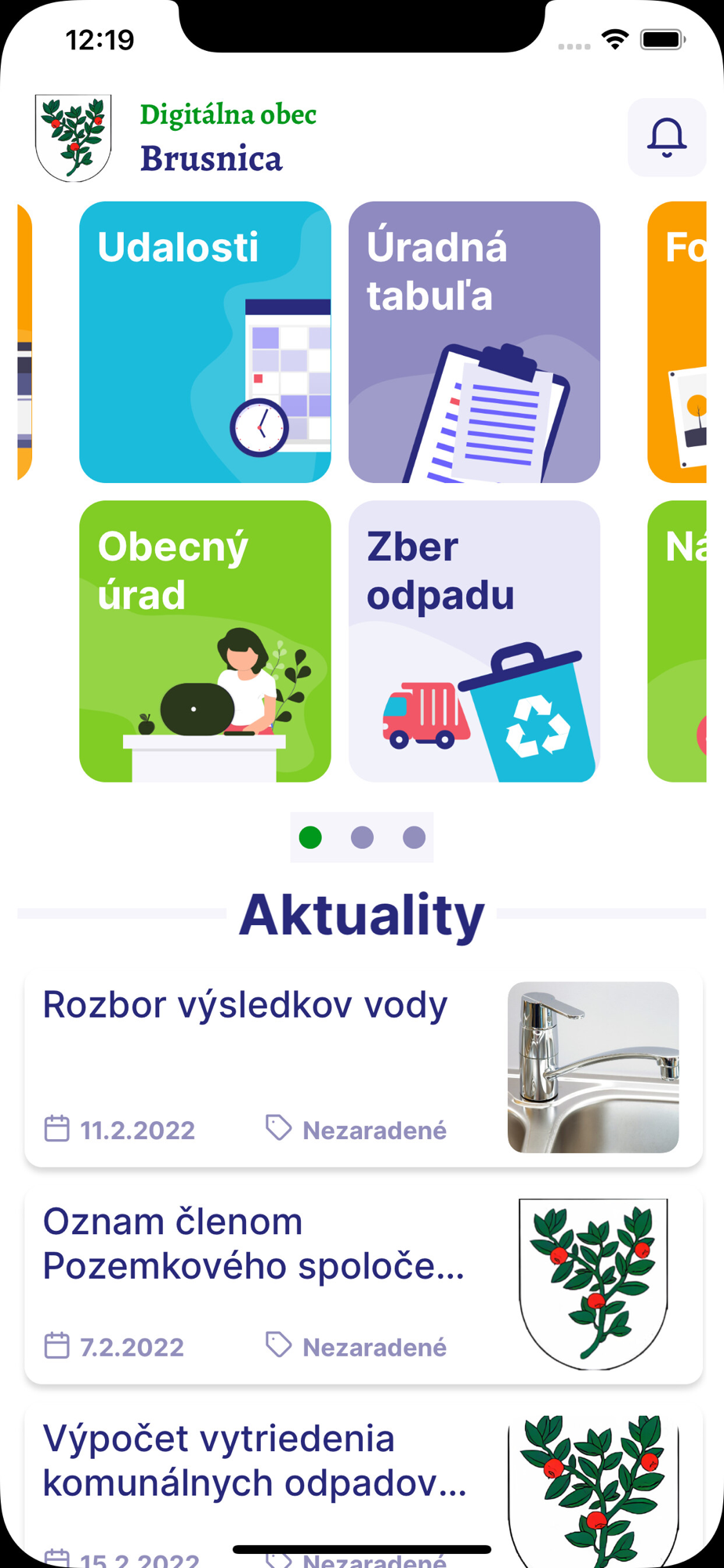 Na jednom mieste aktuality, udalosti, informácie z obecného úradu, počasie, kalendár zberu odpadu, fotogaléria, farské oznamy, história, užitočné návody, zasielanie dôležitých notifikácií a všetky ostatné informácie pre občana.