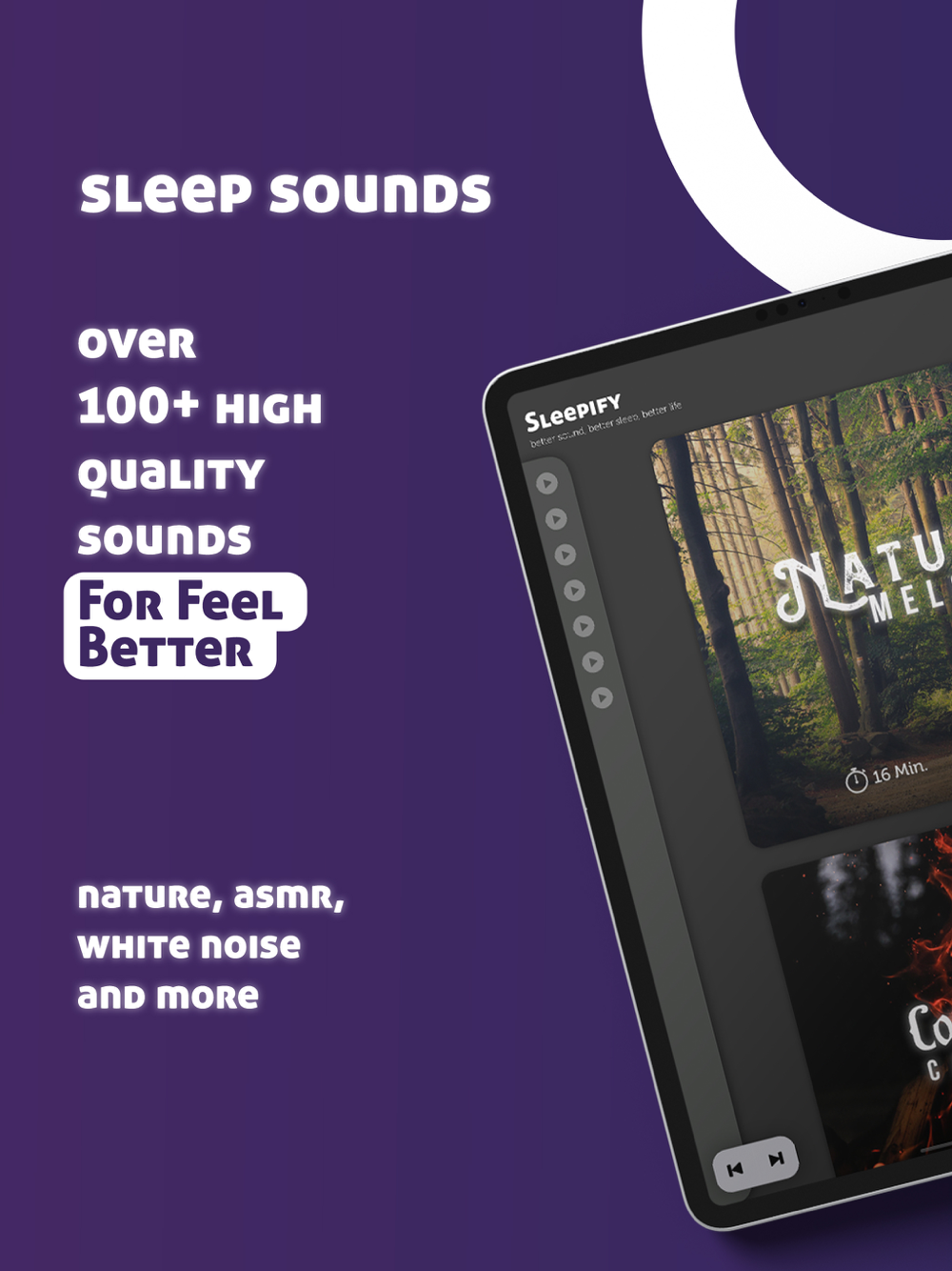 Introducing Sleepify Sleep Sounds, the ultimate app for soothing sounds, white noise, and nature sounds that will help you get a great night's sleep. Our app is designed to help you relax, de-stress, and drift off into a peaceful slumber.
