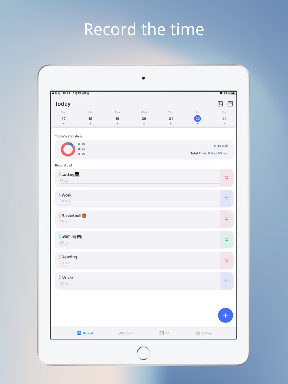 【Tricolor Time】 helps you keep track of what you do and how much time you spend each day