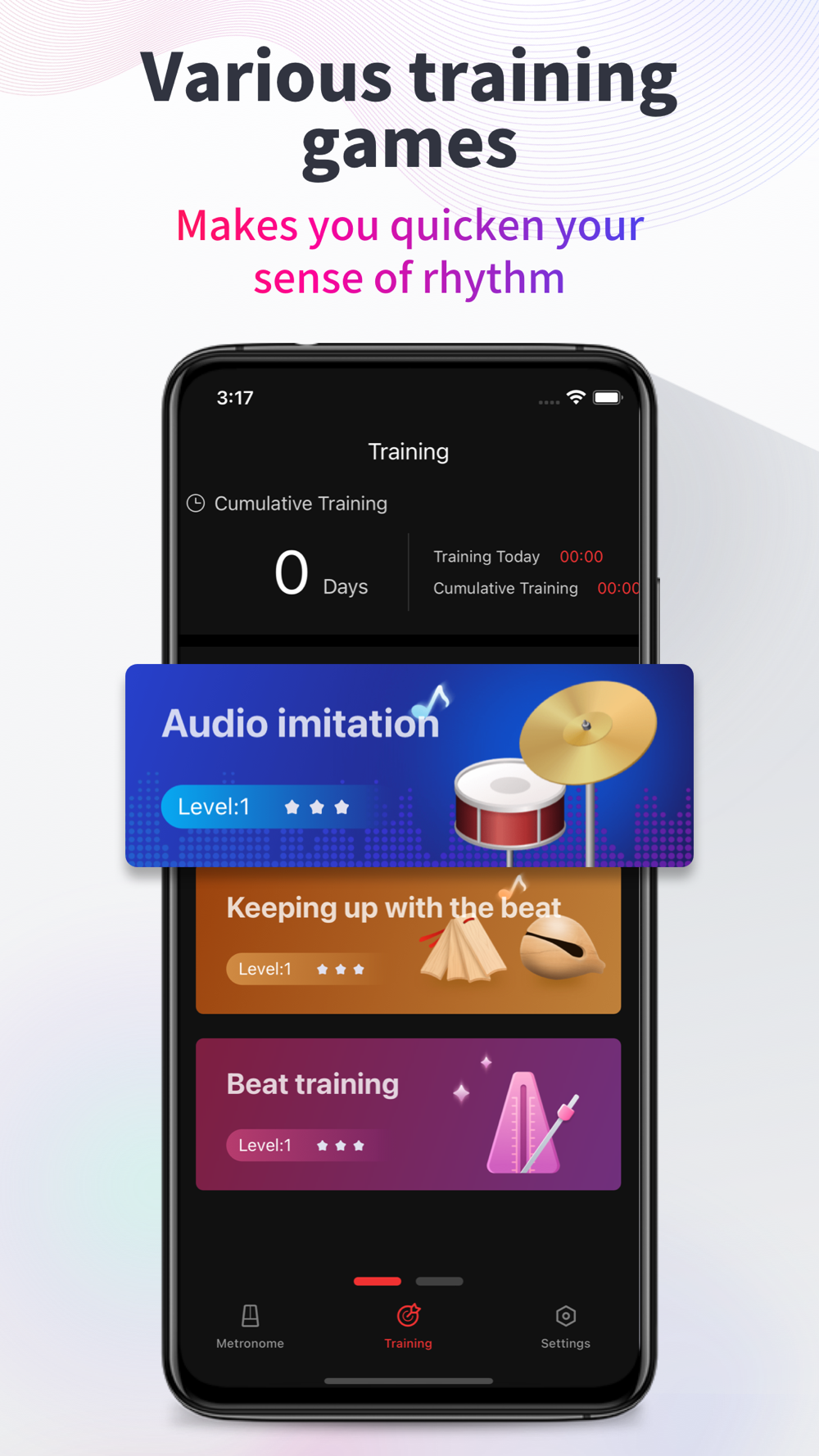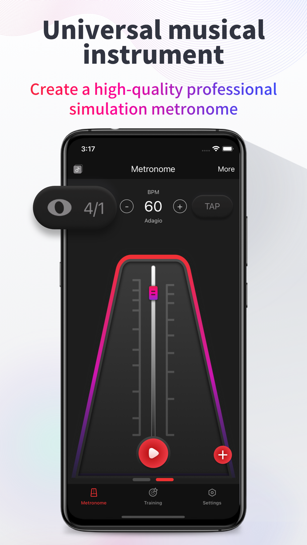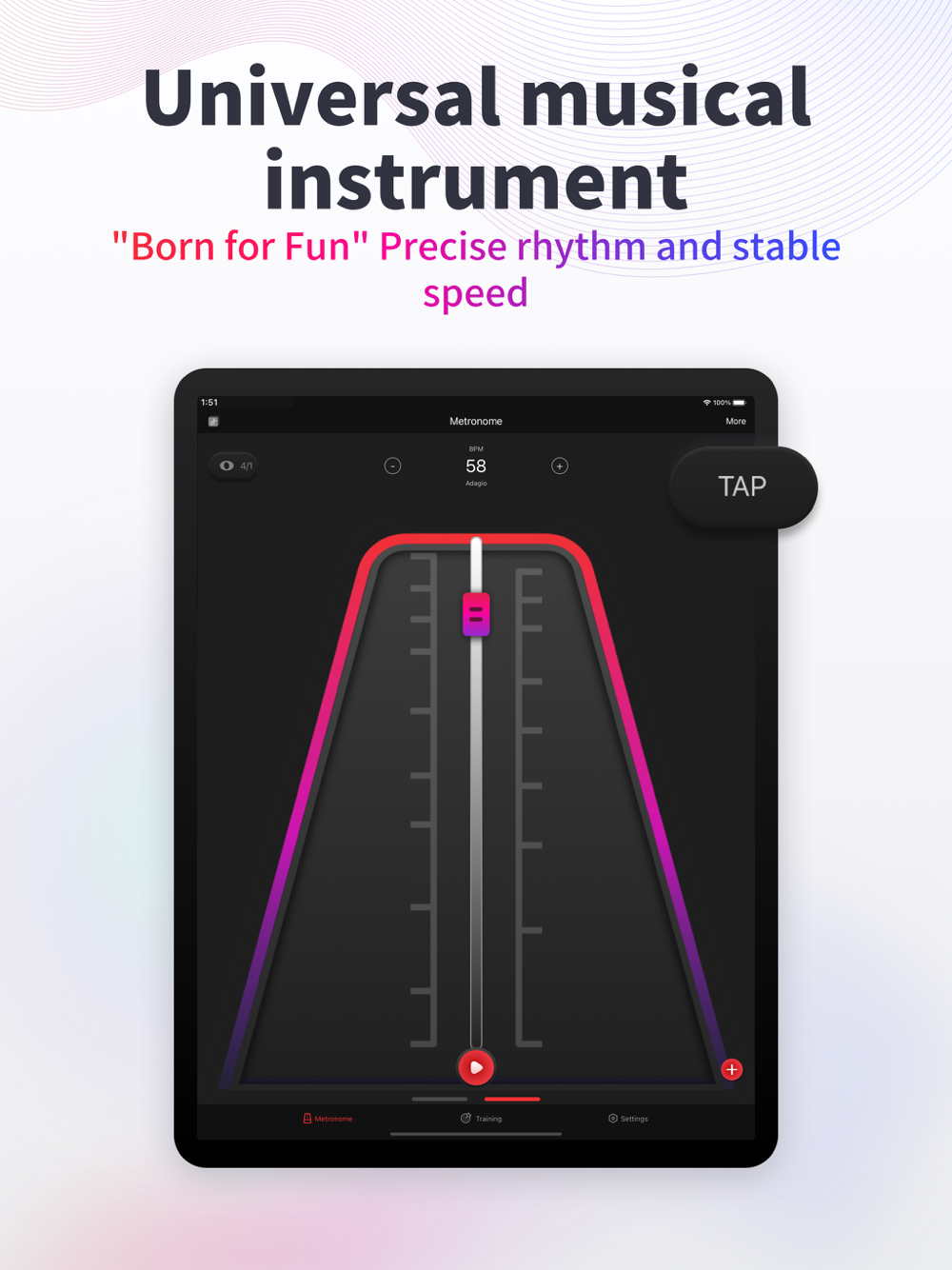 Metronome is for every music lover, helping you master professional rhythm! Whether you're an established master or a fledgling rookie, it's a rhythm tool you deserve.
