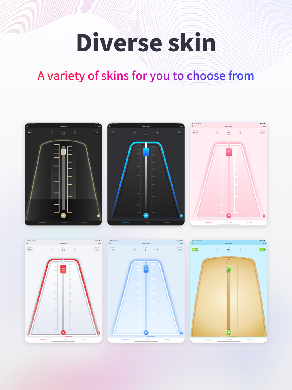 A professional music metronome & tuner which is prepared specially for you to practice musical instruments and to play with the rhythm of music. It can not only help you master the daily rhythm of musical instruments, but also be an essential tool for advanced rhythm training of musical instruments. The metronome makes it so convenient and simple to master the rhythm and tempo, and makes you be more sensitive to the rhythm and more sensitive to the tempo. Metronome will make you fall in love with instruments such as the piano, guzheng, ukulele, etc.