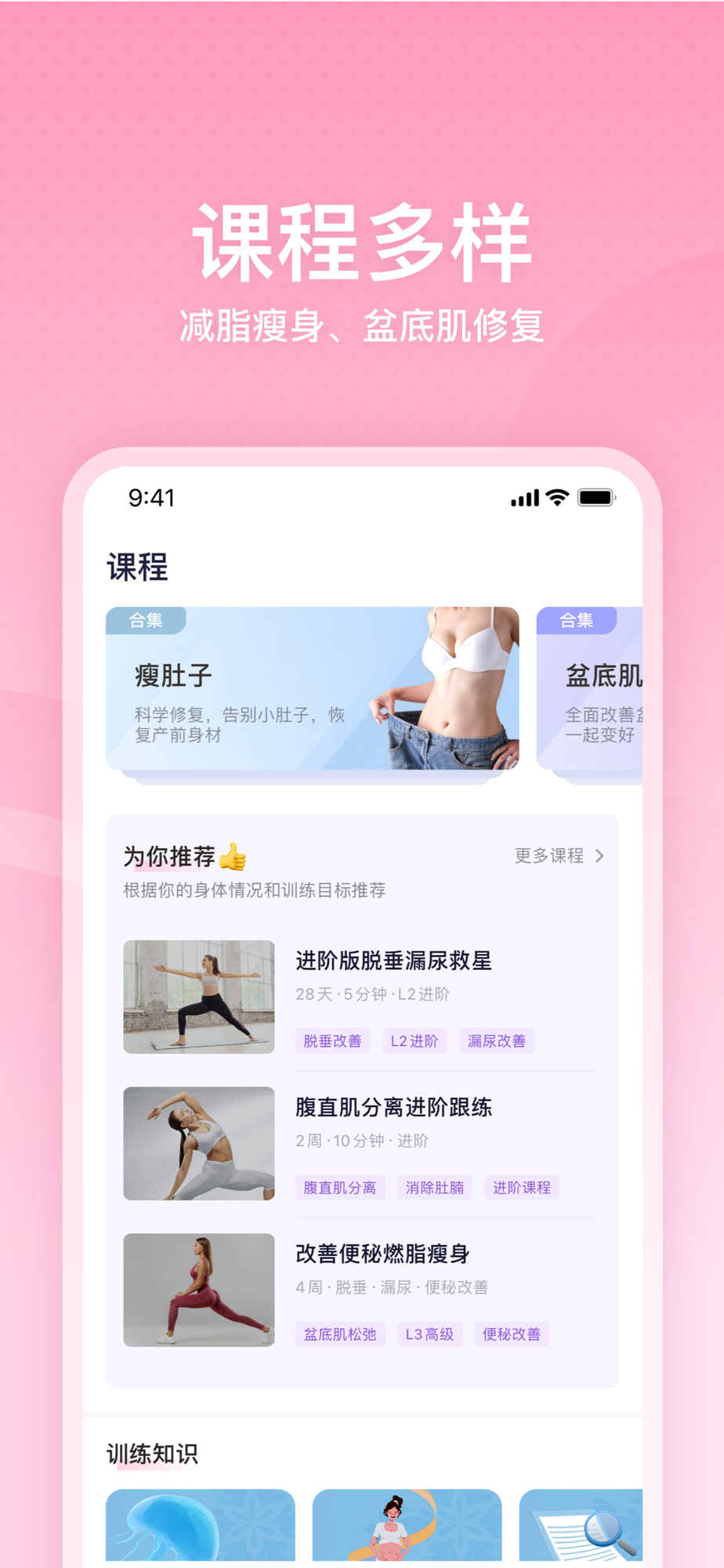 你不仅是一个瑜伽者。我们针对不同的人群,设计了不同的训练计划。产褥期到理想修复期,都有对应的真人计划跟练。