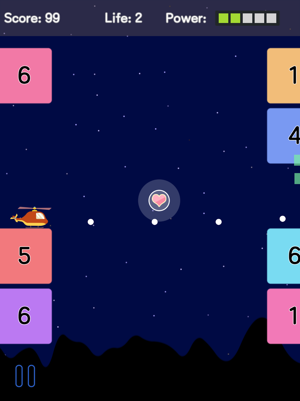Tap the screen to control the helicopter's balance and automatically shoot bullets to destroy obstacles ahead. Easy to play but hard to master. Can you break the 100-point barrier? Prove your skills now!