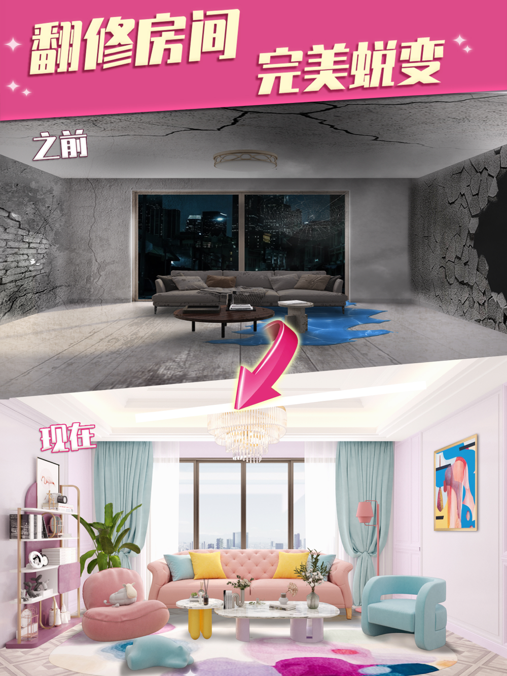 1.容易上手:游戏玩法简单易懂,没有复杂的内容,拖拽合并收集物件,进行家居设计,帮助你爱上家装