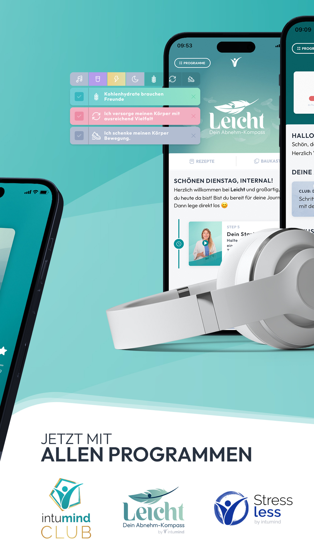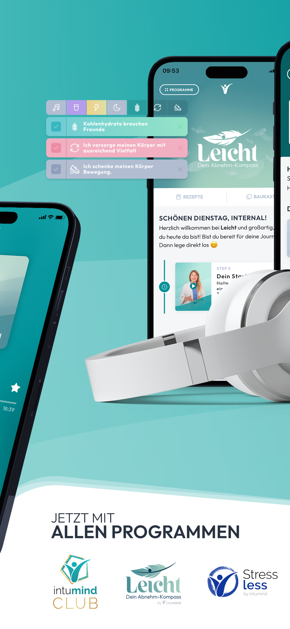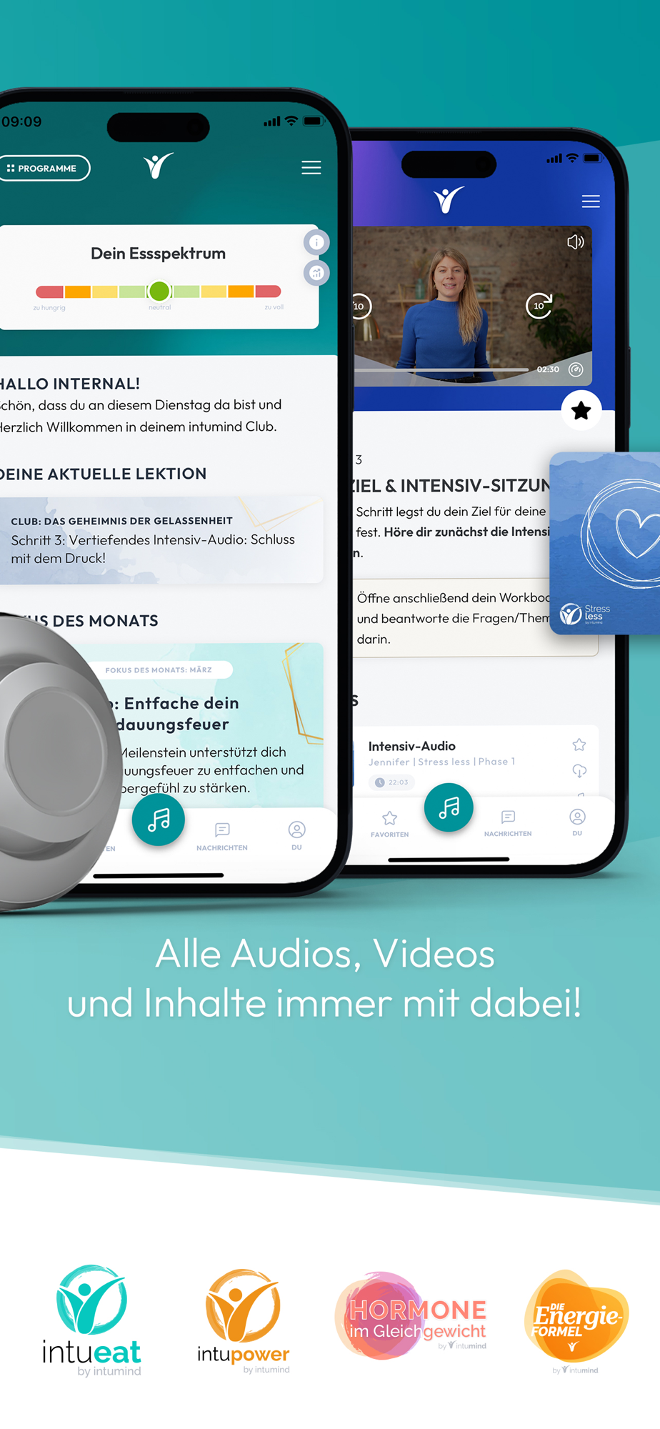 Mit der neuen intumind App kannst du jetzt alle E-Health Coaching Programme wie z.B. intueat 5, intupower, Stress less, Leicht oder den intumind-Club auf deinem Smartphone absolvieren. Du wirst schrittweise durch die Programme und den Club geleitet, kannst die Coaching-Videos ansehen und mentalen Audio-Trainings anhören. Du hast Zugriff auf Inhalte deines Mitgliederbereichs und kannst ganz einfach deine Favoriten anlegen und verwalten, um schneller auf deine Lieblings-Inhalte zugreifen zu können.