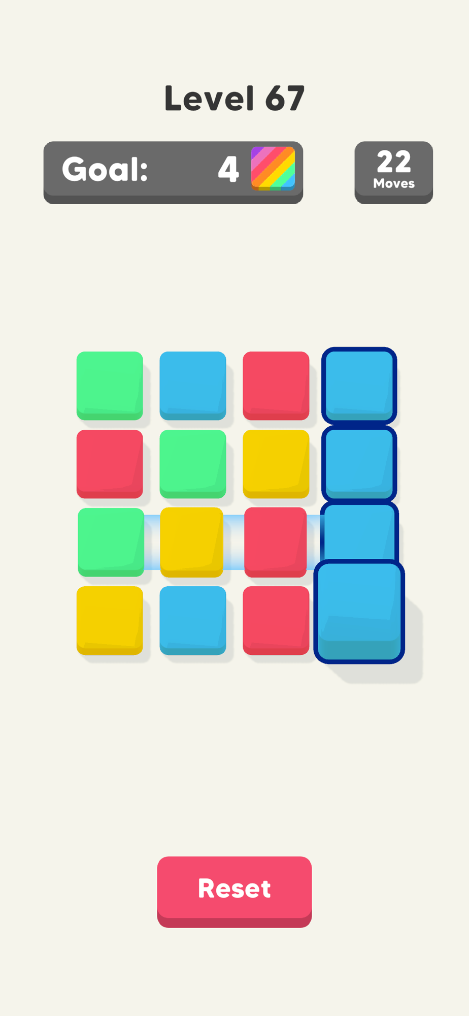 Swipe and arrange the color blocks to destroy them before your moves run out!