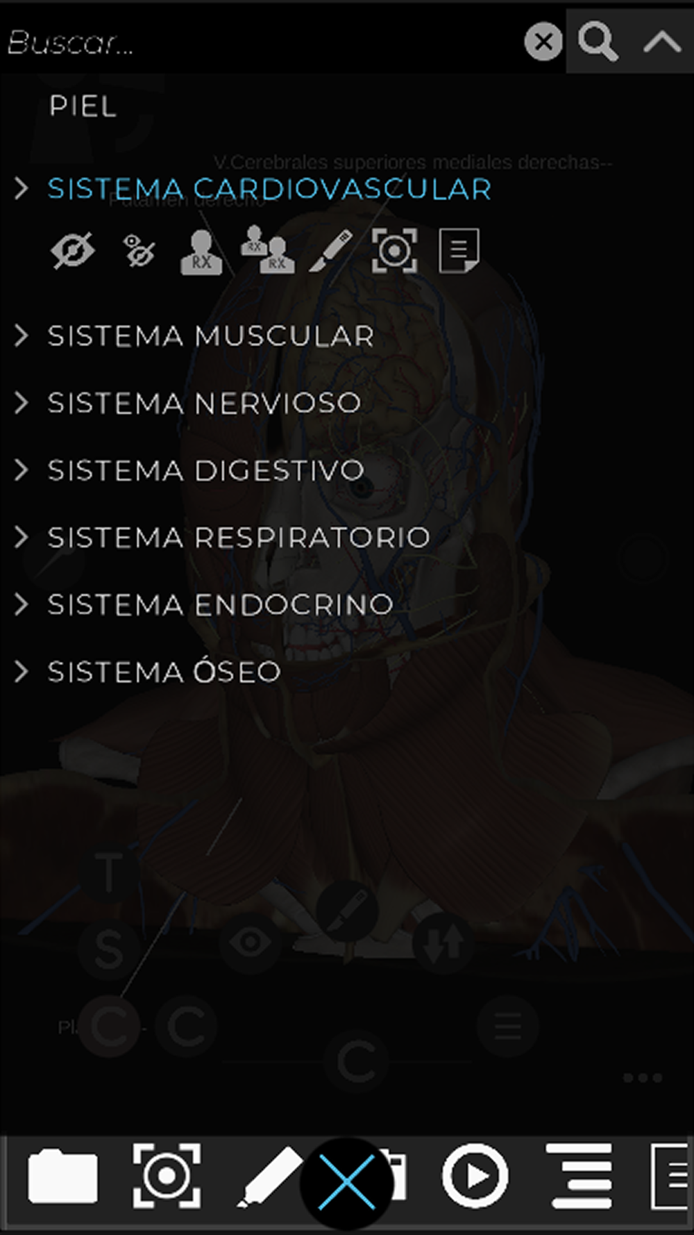 3dissect es un atlas de anatomía portable y realista que presenta órganos generados a partir de imágenes de cortes de un espécimen real. 3dissect móvil permite establecer visibilidad de órganos y sistemas para hacerlos transparentes, ocultos ó visibles, también es posible ver el modelo desde cualquier órgano y distancia. 3dissect incluye cortes a color en los planos transversal sagital y coronal, los cuales se superponen al modelo y se pueden usar para cortar órganos y/o sistemas. Los usuarios pueden agregar pines para nombrar órganos y estructuras anatómicas o para incluir vínculos a recursos de internet. 3dissect incluye un gestor de archivos que permite guardar las escenas creadas durante las diferentes sesiones así como compartirlas con otros usuarios. El painter de 3dissect permite la edición de esquemas a partir del modelo de 3dissect en cualquier estado de visibilidad. Una vez las escenas se han hecho públicas se puede obtener la dirección url de la escena para incluirla dentro de una lección de e-learning. 3dissect permite presentar evaluaciones creadas por otros usuarios.
