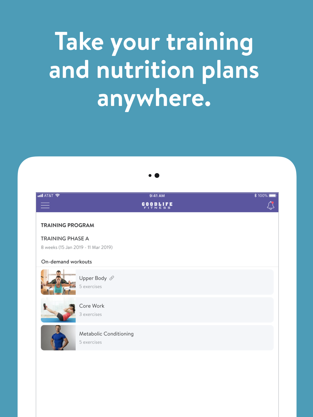With the GoodLife Fitness Coaching App, you will have access to workout programs designed specifically to help you reach your fitness and health goals! You can follow & track your workouts, your nutrition, your lifestyle habits, measurements and results–all with the help of your coach.