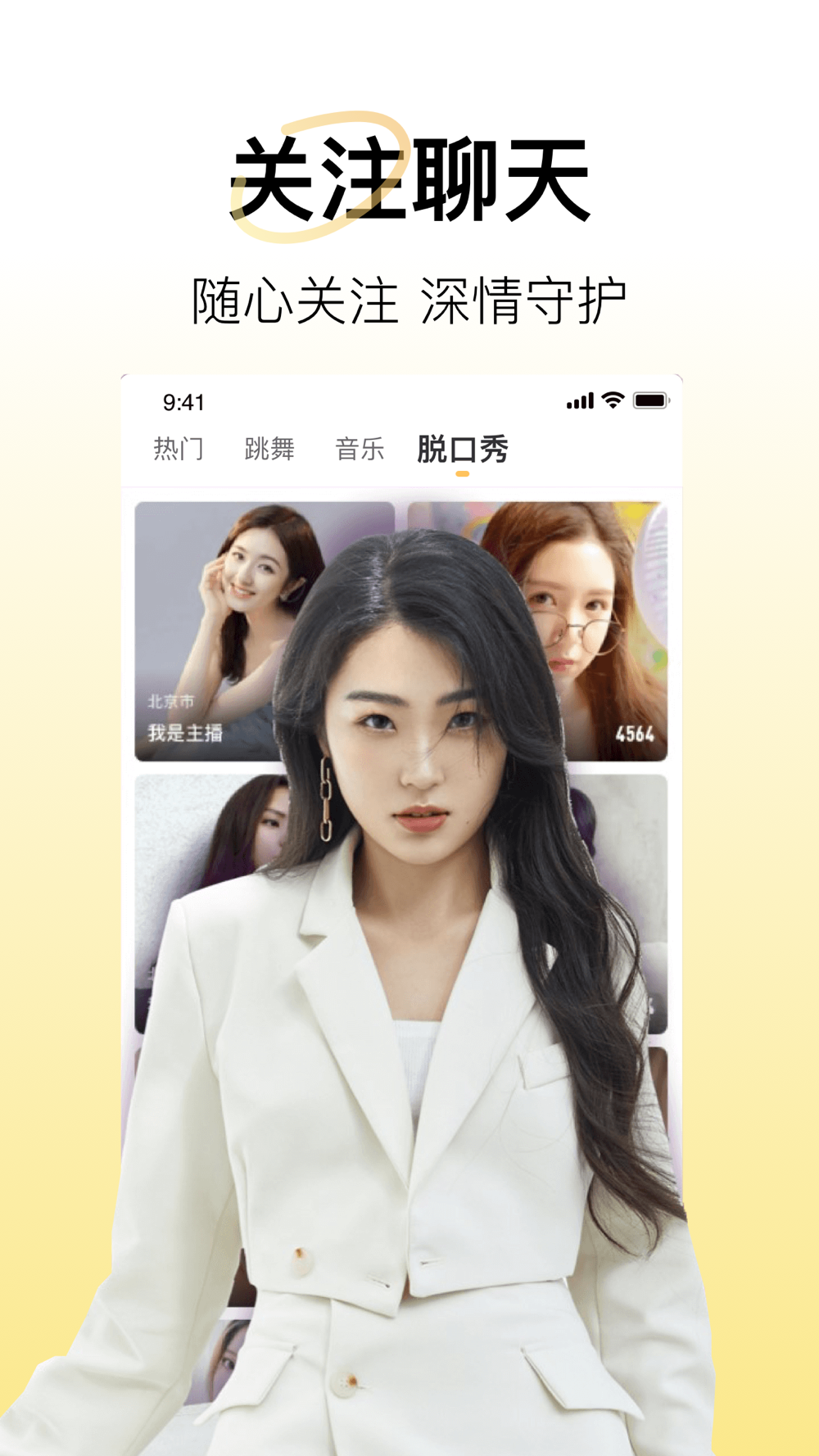 一键交友快意聊天:点击“关注”,你可以轻松找到已关注且正在直播的主播,进入直播间与他们即时互动,主播陪你火爆全程,聊个天、听首曲、赏支舞,助你赢得好心情!