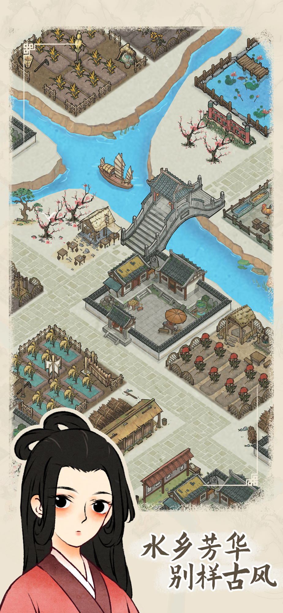 《水乡芳华录》是一款古风题材的模拟经营游戏,你将可以置身在宛如世外桃源般的水乡小镇里,开始规划起这里的点点滴滴。