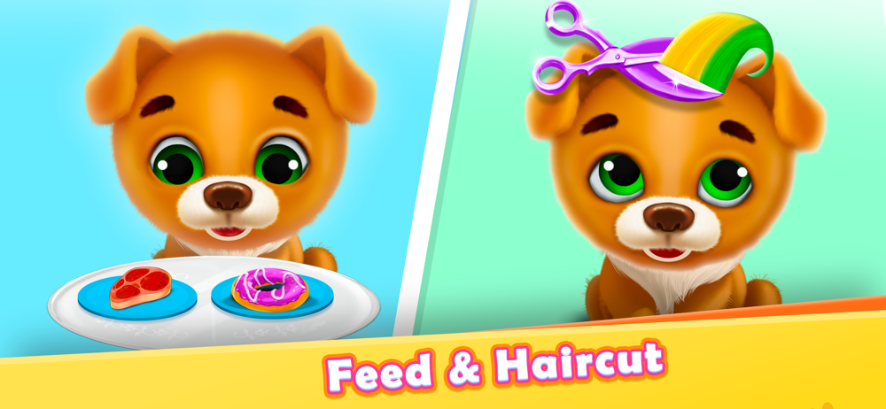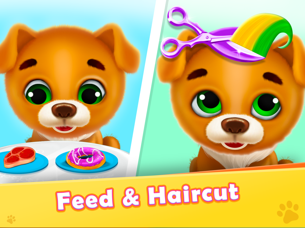 Eating : Prepare delicious snacks & feed your hungry puppies. Choose your pet's favorite utensil and serve the food of his choice. You can also prepare the healthy food of your puppy's choice.