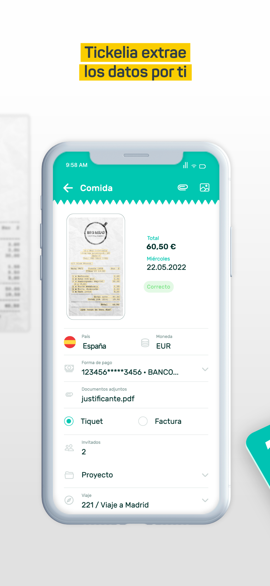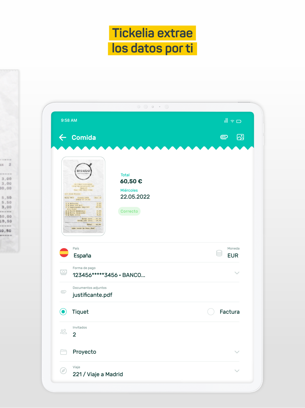 2. Olvídate de guardar el original en papel. Tickelia está homologada por la Agencia Tributaria de múltiples países.