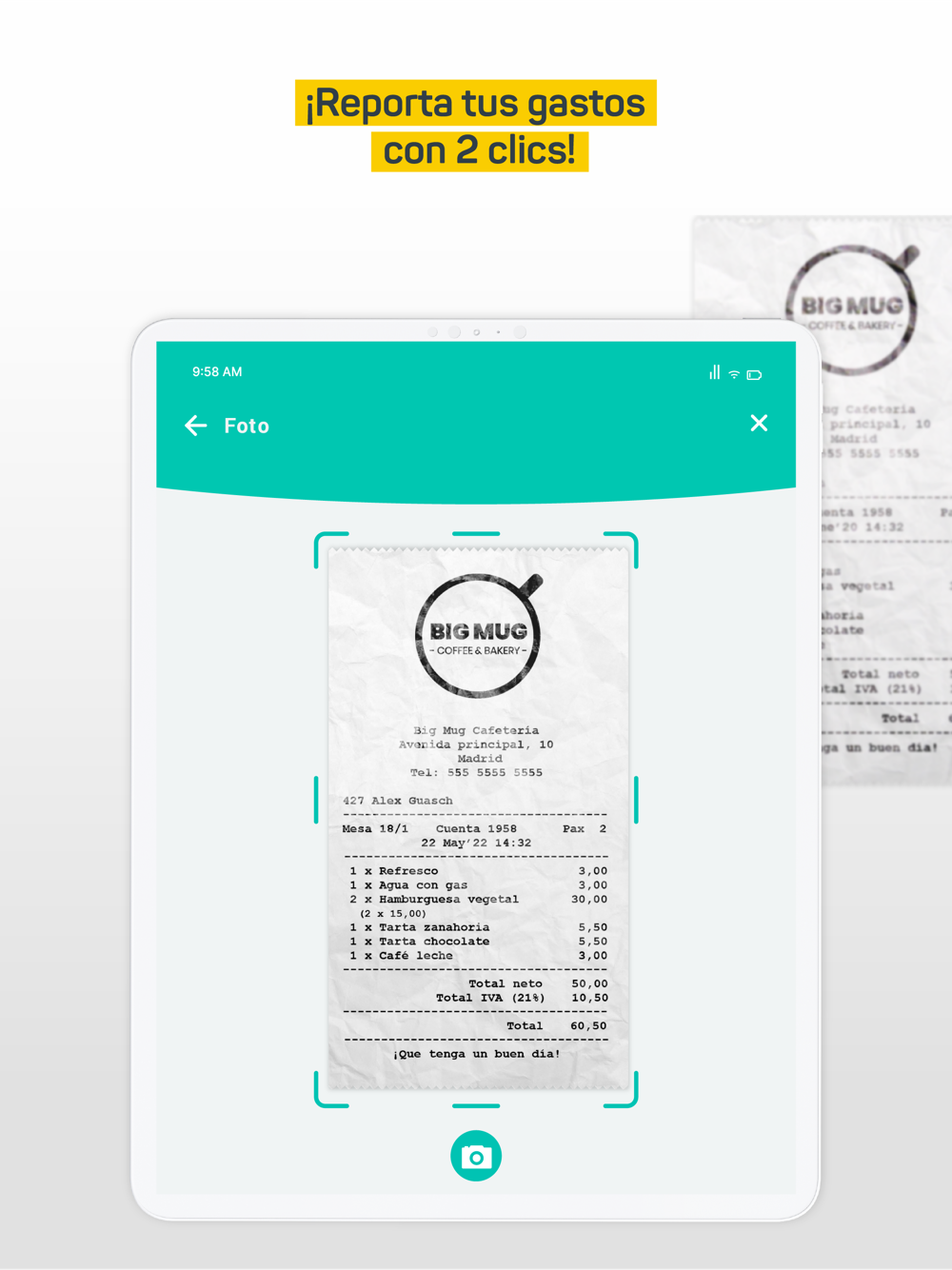 1. Reporta los gastos realizando una foto del gasto desde tu Smartphone o reportando el kilometraje con Google Maps.