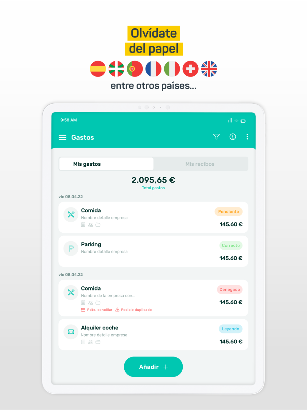 7. Integra la petición de anticipos en el proceso de notas de gasto de la forma más sencilla posible.
