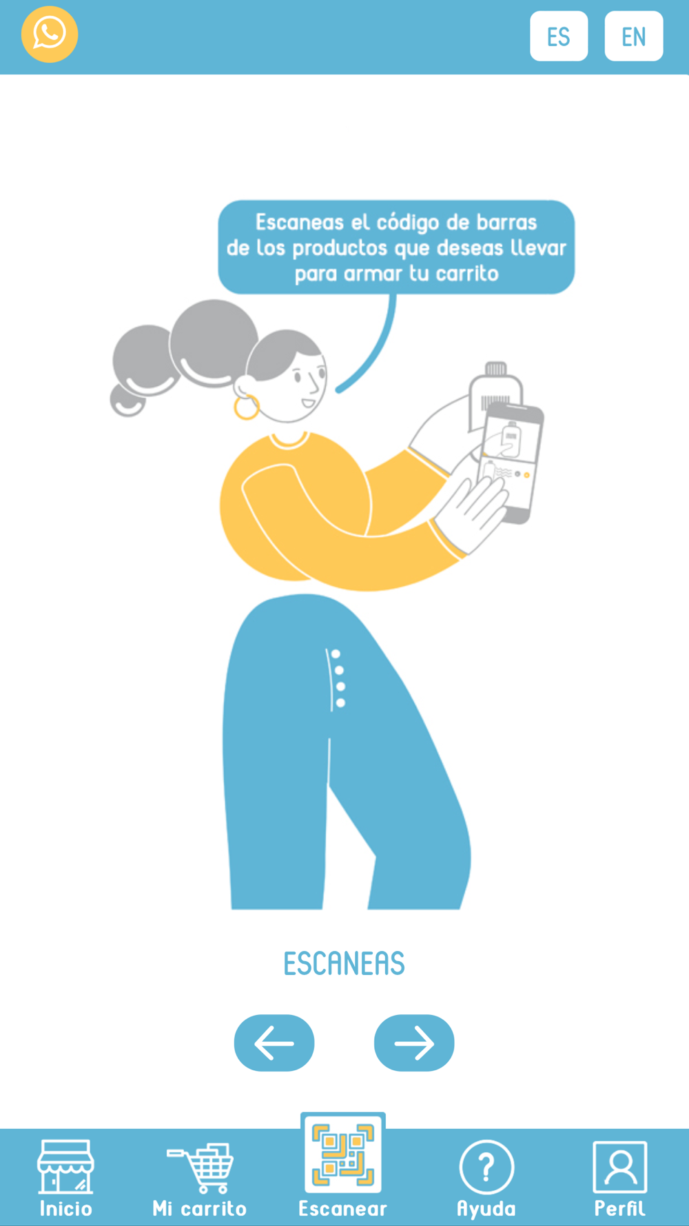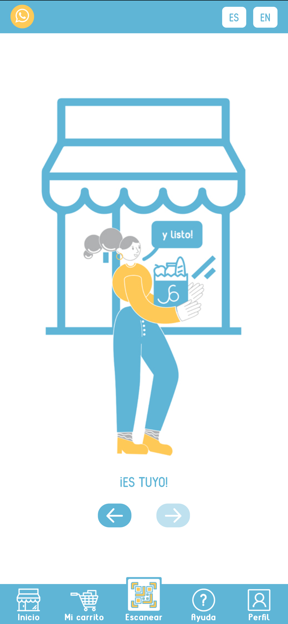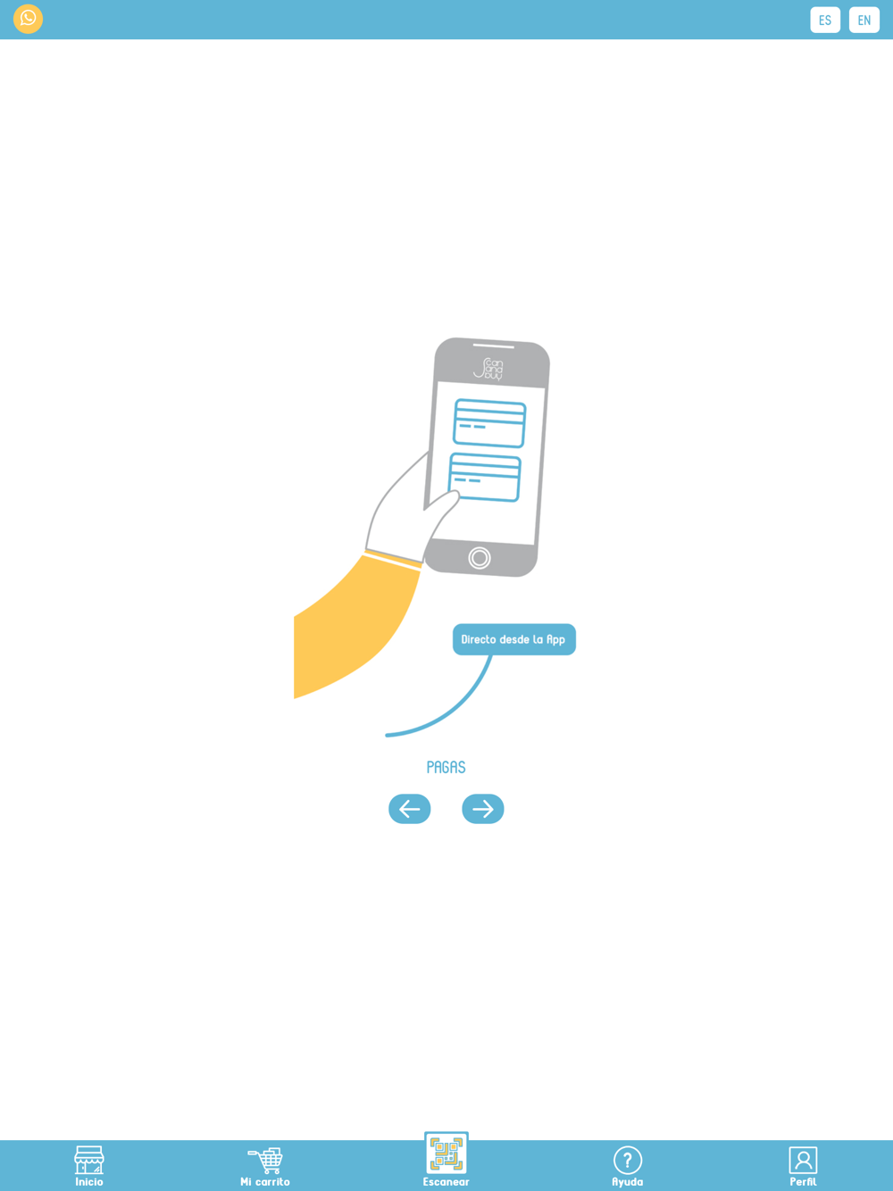 La app Scan and Buy te propone una nueva forma de comprar. Ingresas a nuestra tienda física escaneando el QR desde la app. Vas sumando los productos que deseas llevar escaneando el código de barras. Para finalizar tu compra, confirmas tu carrito y pagas, todo desde la app en tu móvil! Sin hacer filas, sin demoras, las 24 hs.