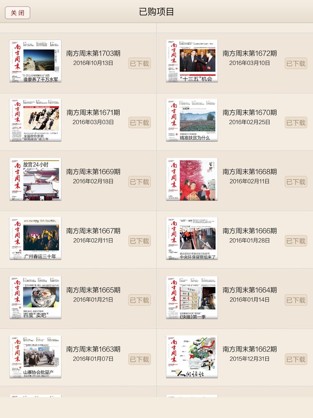 - 订阅《南方周末》一周(1期),人民币3元。自购买当天起,可以阅读一周内更新的报刊。