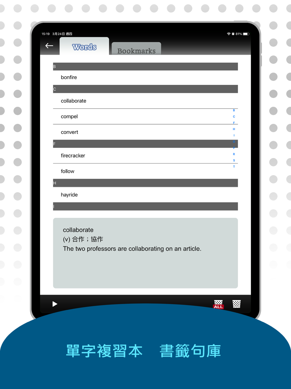 11. 我的筆記:跨期別累計的複習單字本和書籤單句庫。