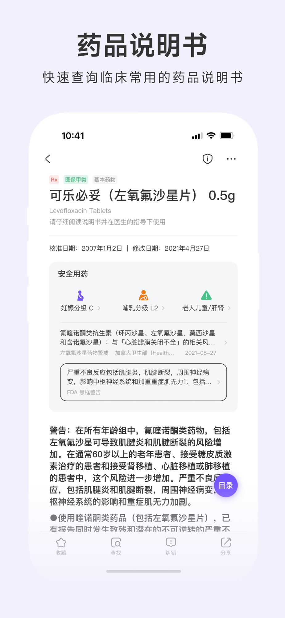 1. 药品信息:支持免费查询超 70000 份国内外上市药品说明书,覆盖国内 99% 的药品数据,并根据药监局药品信息实时更新。同时,包含 2000+ 药物成分(ATC 分类)的合理用药指导,包括用法用量(含国内外用法用量对比)、安全用药(含特殊人群用药调整、妊娠哺乳用药安全、药物警戒等)、药理毒理、患者教育等最受医生关注的用药知识。