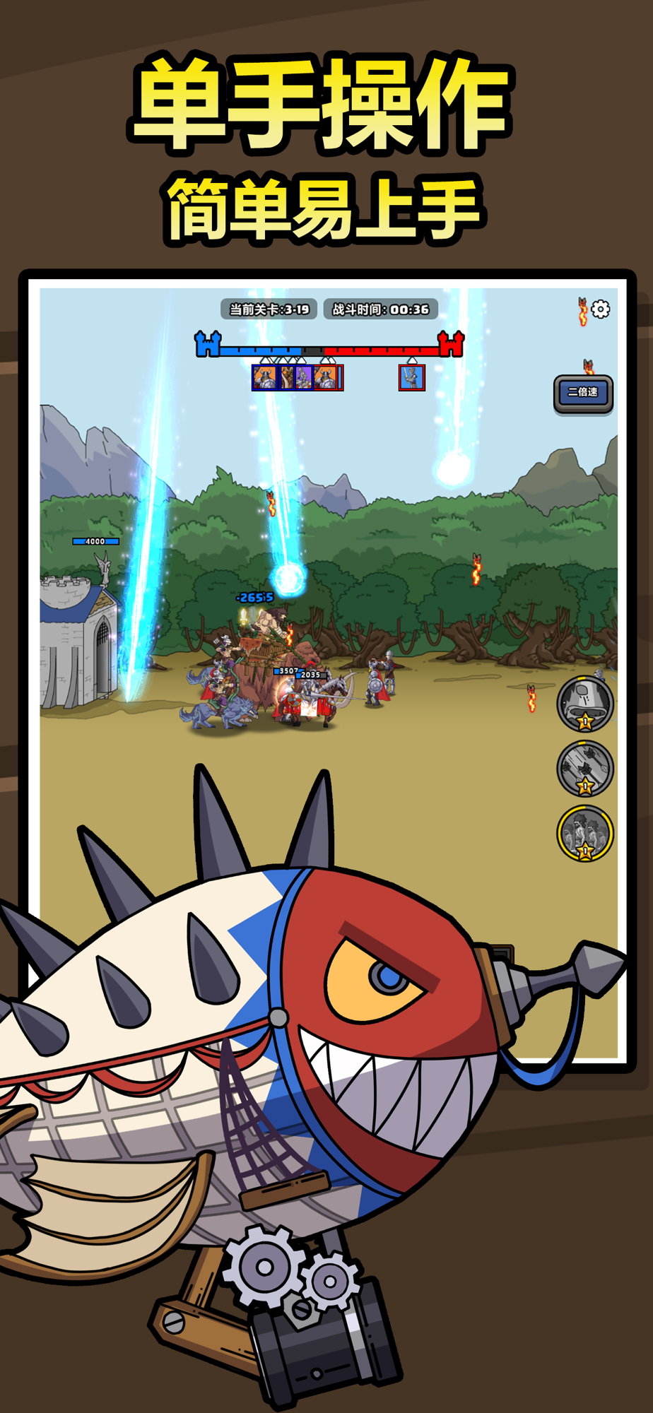 《原始人别嚣张-原始人进化史》是一款以多个时代作为背景的策略对战游戏。在基础设定中,玩家需要和对手斗智斗勇,用更加科学的方案,更加灵活的策略,在一次次对战中获得先机,然后击败对方的基地,最终获得一场战斗的胜利。游戏中的建筑和兵种采用了不同时代的知名兵种,包含了蛮荒时代、石器时代、青铜时代、封建时代、蒸汽时代、工业时代和太空时代。不同时代的对抗是一大亮点,当不同时代的兵种和科技融合于一身时,策略也将变得格外有趣。
