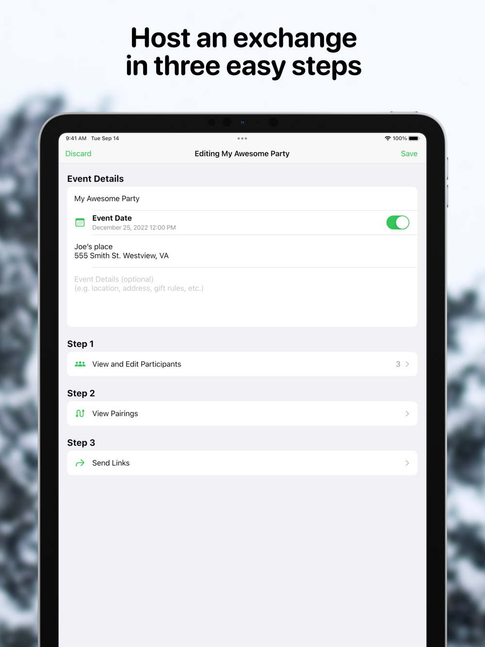 Super Secret Santa automatically matches your friends and family to each other and creates a unique link for each person to view their matching.