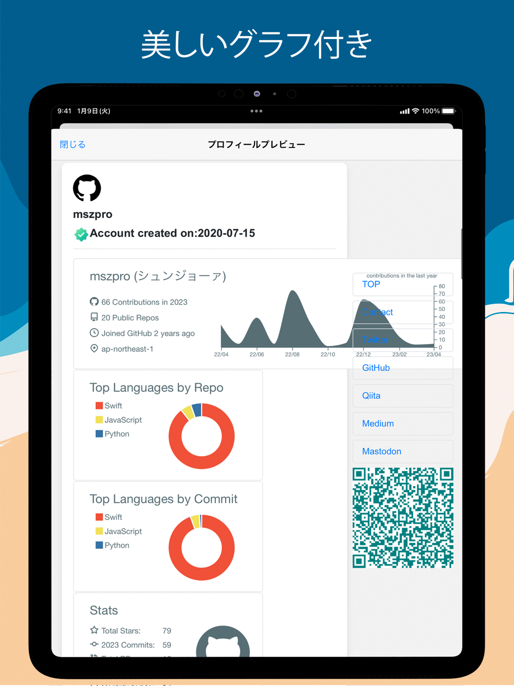 ページには、SNSのタイムラインやGithubでのコーディング統計、Qiitaで公開されたプログラミング記事、そしてカスタムリンクを掲載することができます。