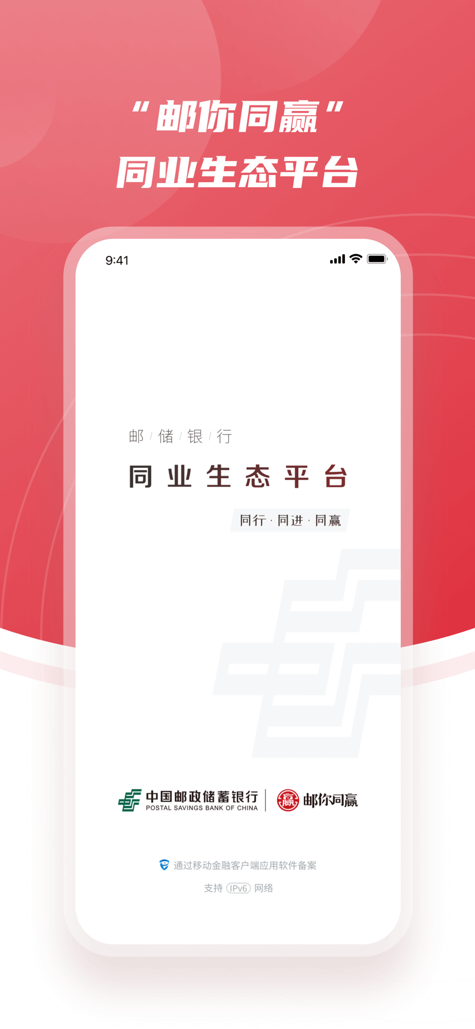 “邮你同赢”手机APP是集客户交流、产品交易、信息交互为一体的同业生态平台手机移动端,进一步提升邮储银行同业客户线上化综合服务能力,满足同业客户日常移动办公场景需要。“邮你同赢”系列将致力于持续创新突破,深化业技融合,打造极致的客户体验,与广大同业伙伴“同行、同进、同赢”。