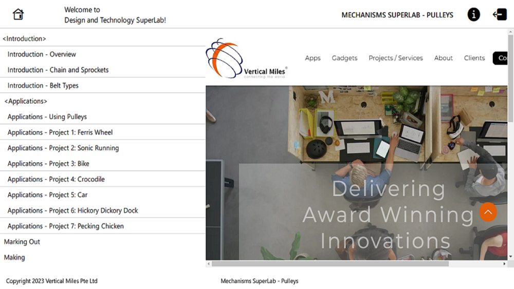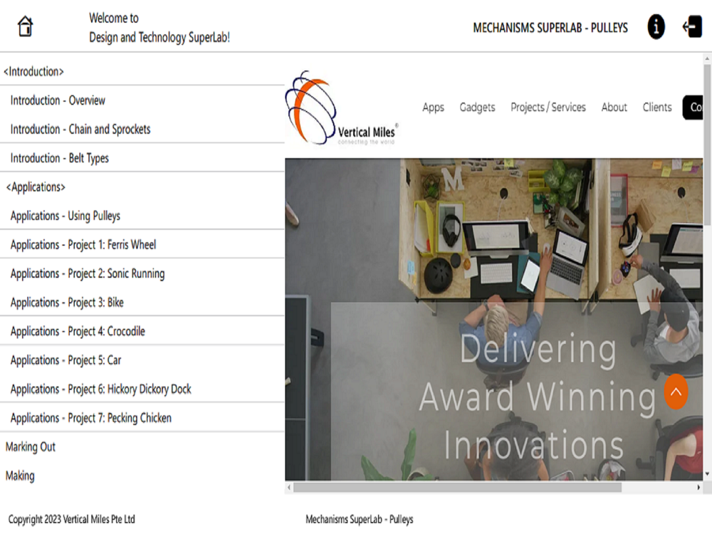 Design & Technology SuperLab is built over a decade of content creation and iterations in authentic learning environment to help you design and create successful projects with step-by-step picture, text, animations and video (with subtitle) illustrations.