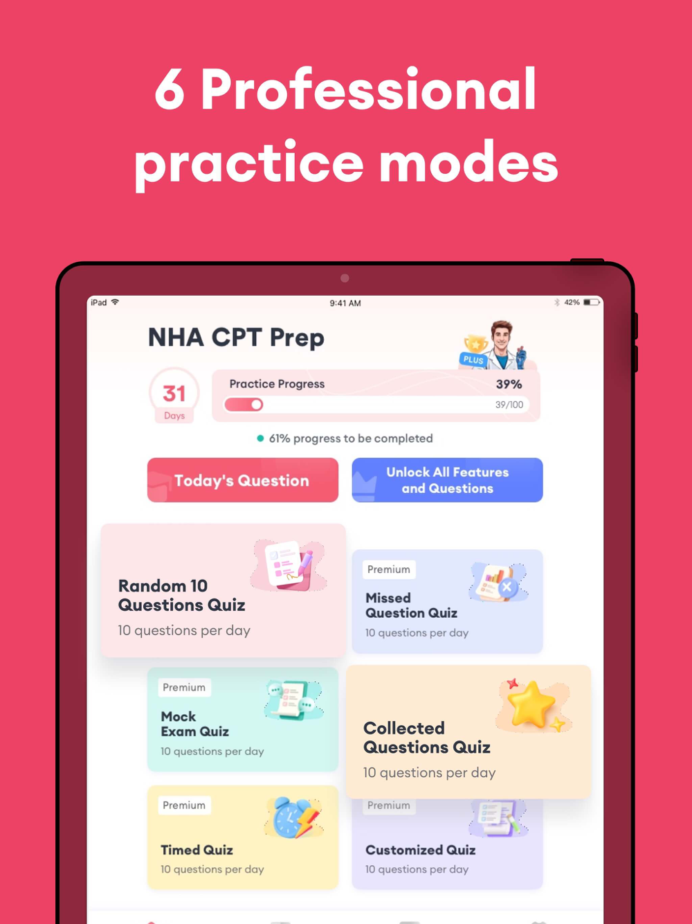 NHA CPT Test Prep 2025 is an application that has been carefully designed and developed by industry test experts. With over 1,000 high-quality test questions and answer explanations, multiple test modes and a scientific analysis system, it helps you practice efficiently anytime, anywhere, making it more likely that you will pass your NHA CPT certification exam on the first try!