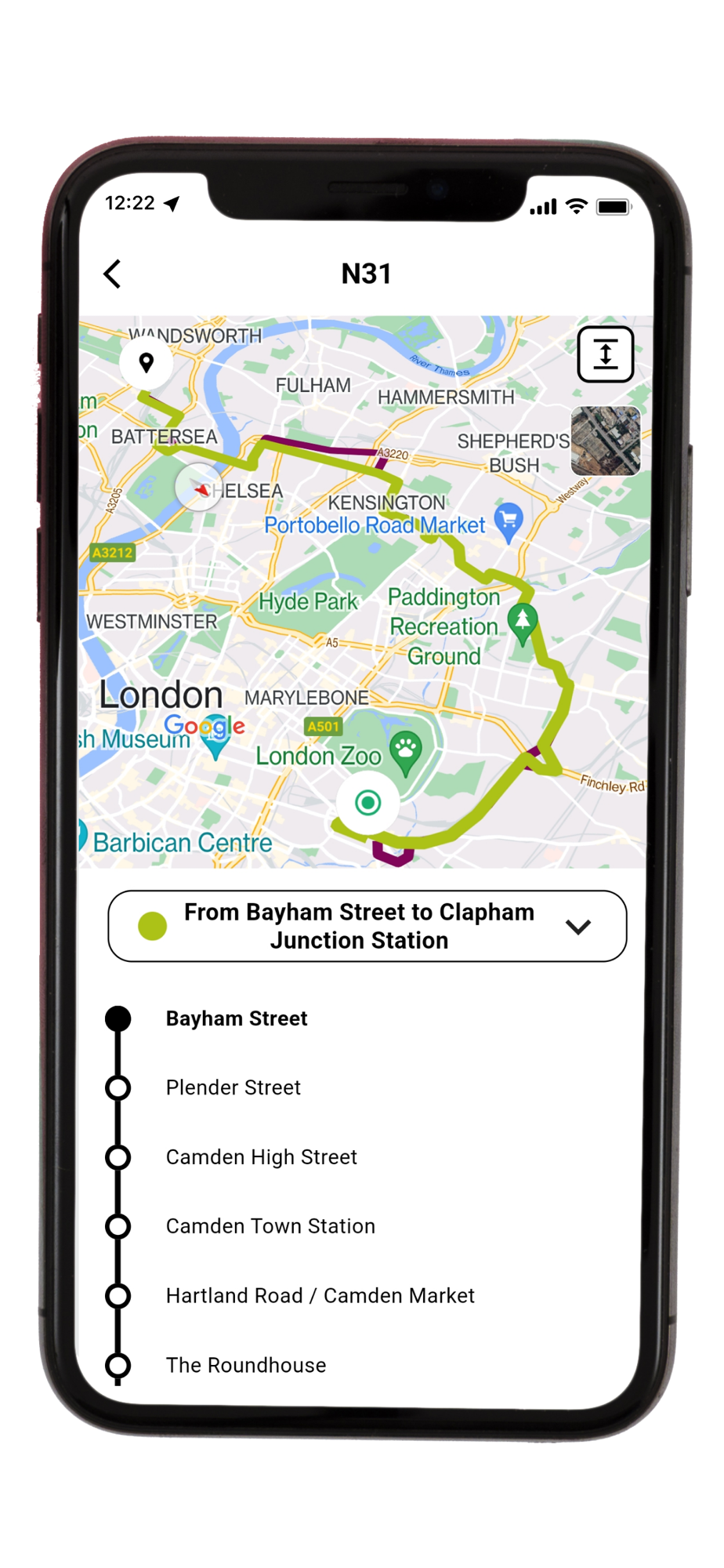 By integrating our free roam function with TfL search (Transport for London), you can view specific bus stops, stations, travel routes, and timetable information at the click of a button.