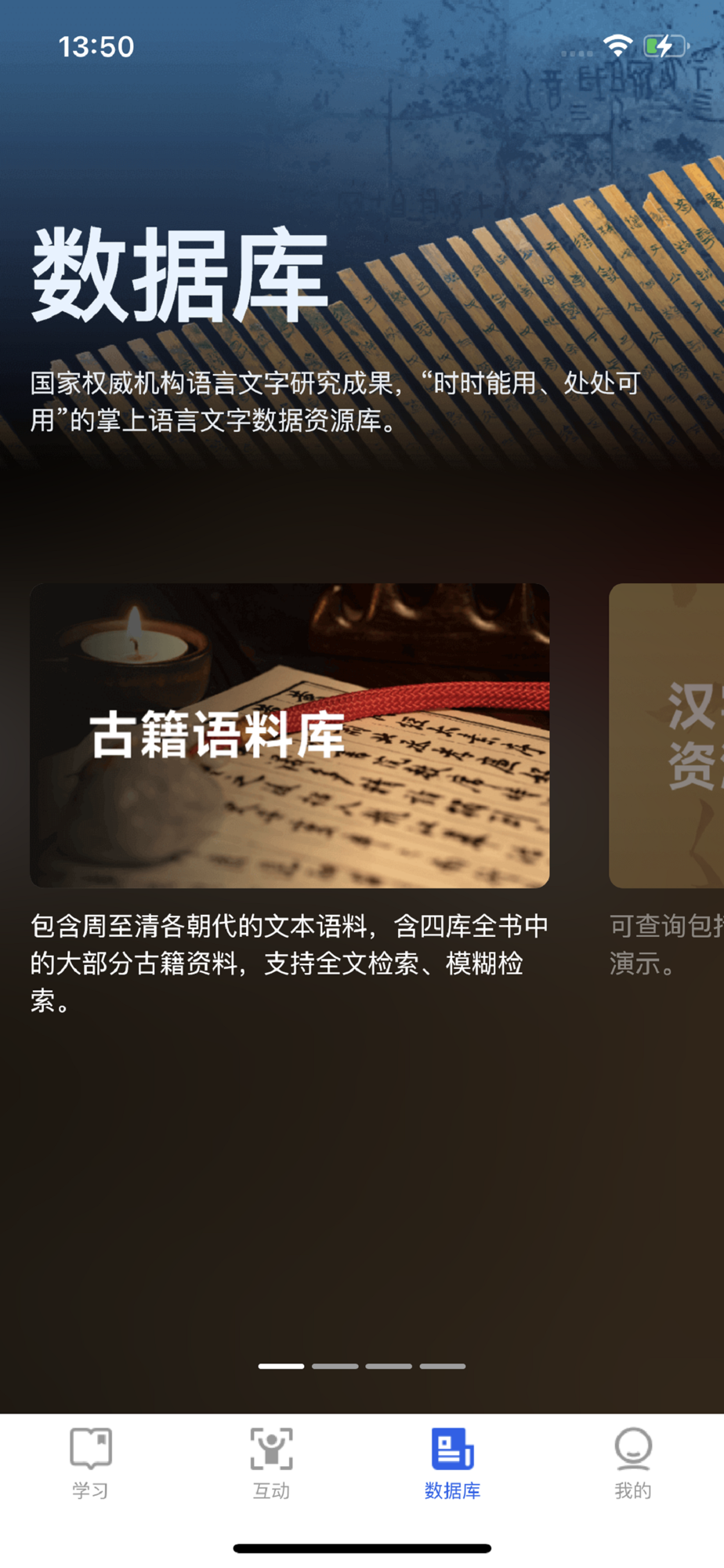 语博移动端平台包括语言国情、发展演变、经典传承、语博书屋、语博学堂、语言智能、主题展览7个主体版块资源,并设置“学习”“互动”“检索”3个功能模块,实现横纵交叉、立体展示,拓展数字语博应用形态,创设时时能学、处处可用的环境。