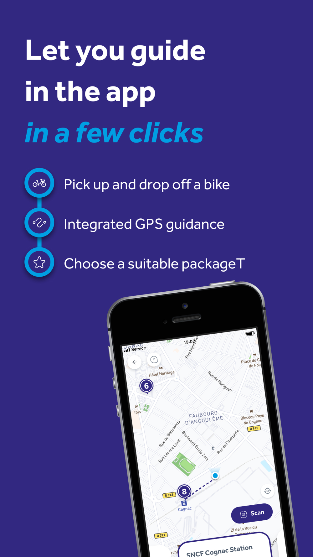 In the three cities - Royan, Cognac and Angoulême - take advantage of a network of stations dedicated to the rental of electric bikes for your occasional trips of a few minutes.