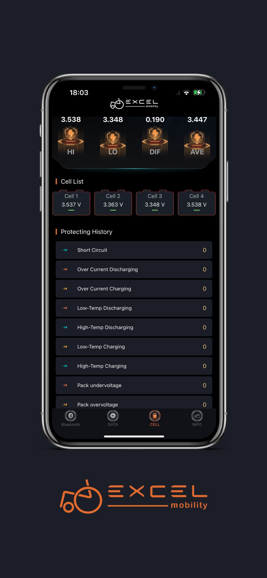 Excel Mobility provides mobile and nursing aids for the elderly and the disabled to provide intelligent battery management systems for wheelchairs, scooters, walkers, electric wheelchairs and boosters, which can be connected via Bluetooth to monitor battery status and collect data in real time Store and process information during battery operation, and exchange information with external devices, so that the following content can be seen intuitively during use: