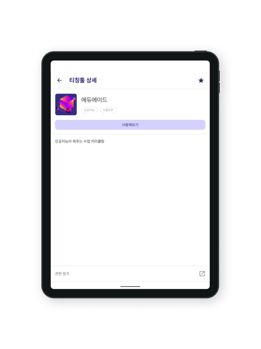 - 티칭툴을 카테고리별로 검색할 수 있으며 즐겨찾기해둘 수 있습니다. 티칭툴 등록을 제안할 수도 있습니다.