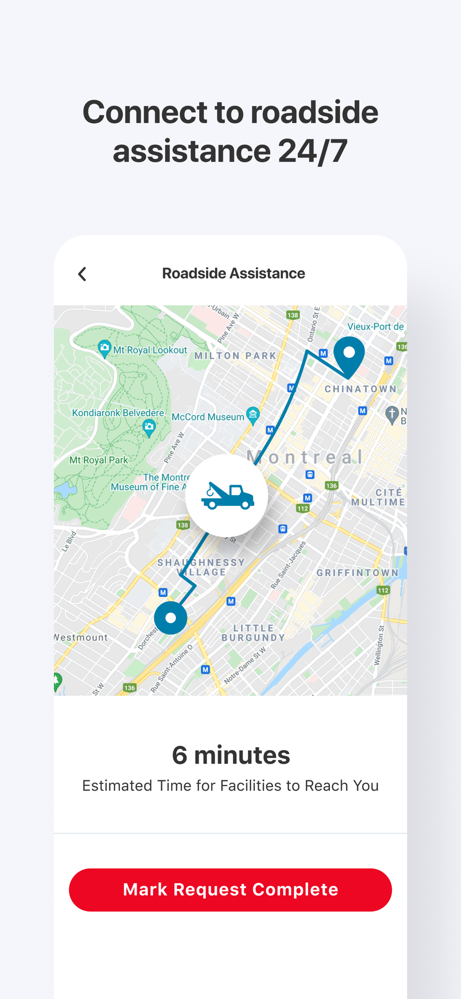 Contact emergency roadside assistance for help with battery boosting, door unlocking, gas delivery, towing, wheel changes and winching. Plus, track the status of your request too.
