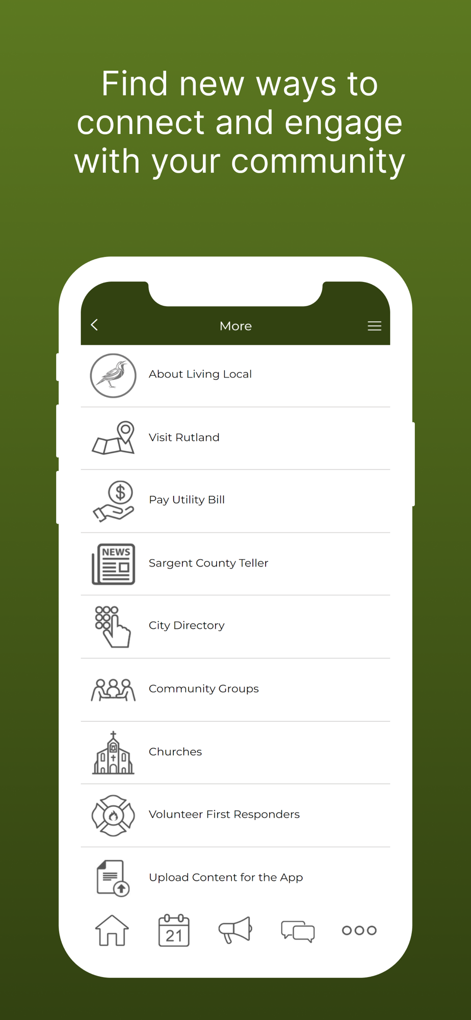 The Rutland ND app is an app designed for residents and visitors of Rutland, ND. The app is a community-reflective app that connects and empowers Rutland residents and visitors with critical, timely and relevant content they want to see. Content includes but not limited to articles, events, videos and resources.