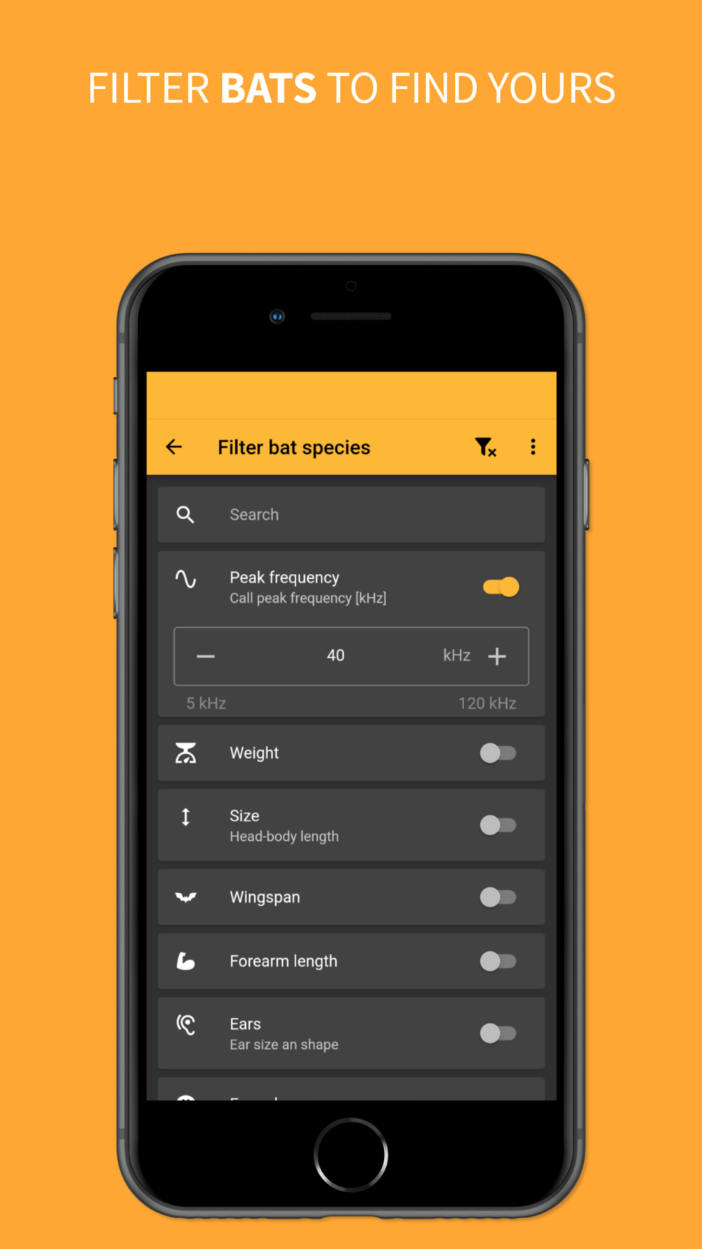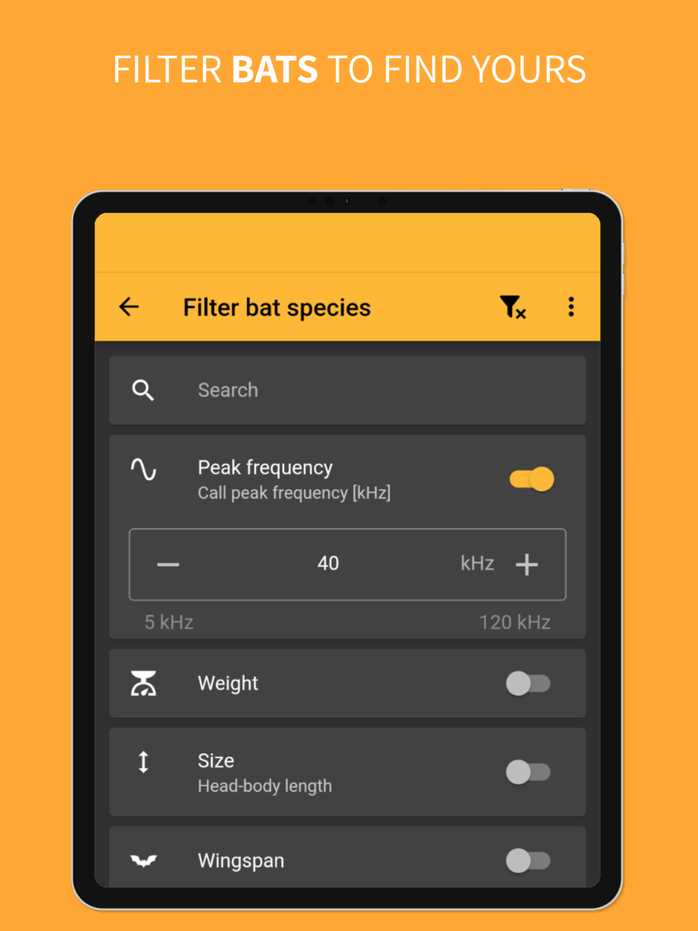 1. Enter the frequency that your BATSCANNER displays to filter the species