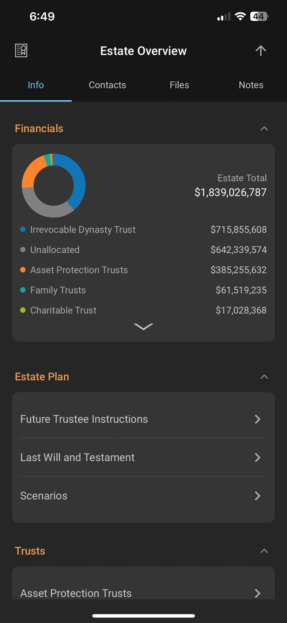 An application designed for principals and family office professionals to help organize and manage complicated lives. Please contact us if you are interested in a demo.