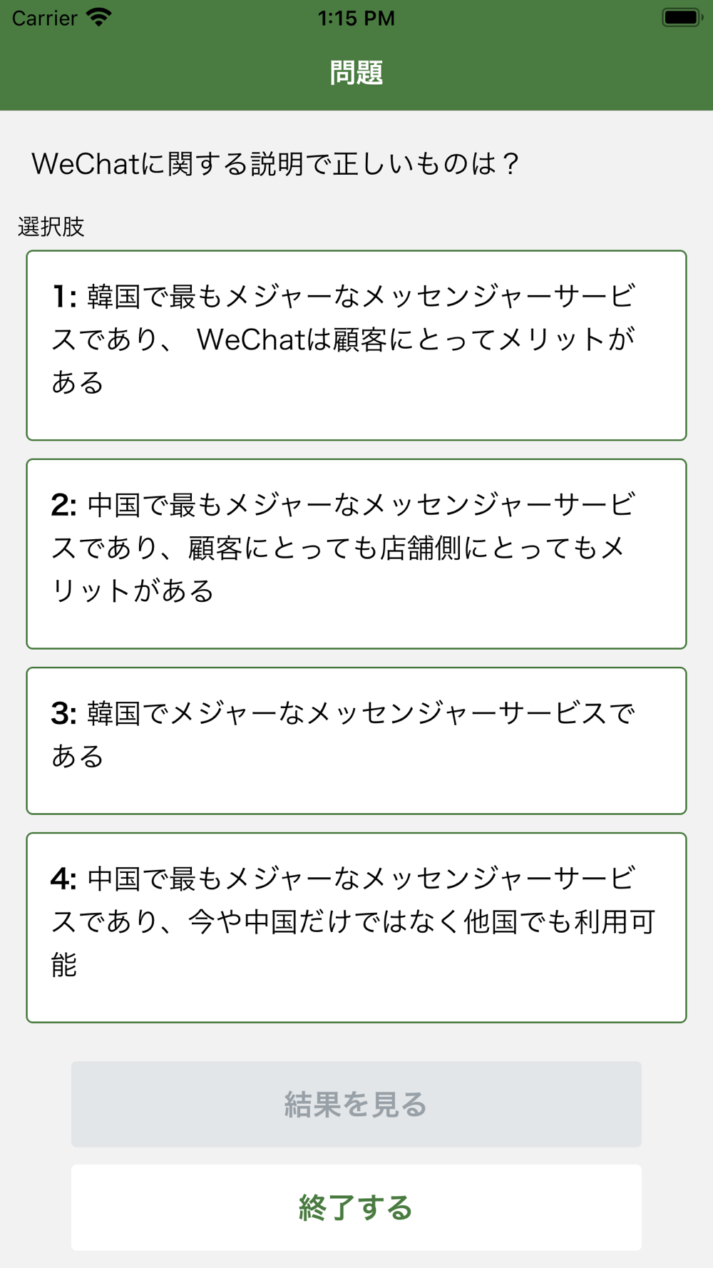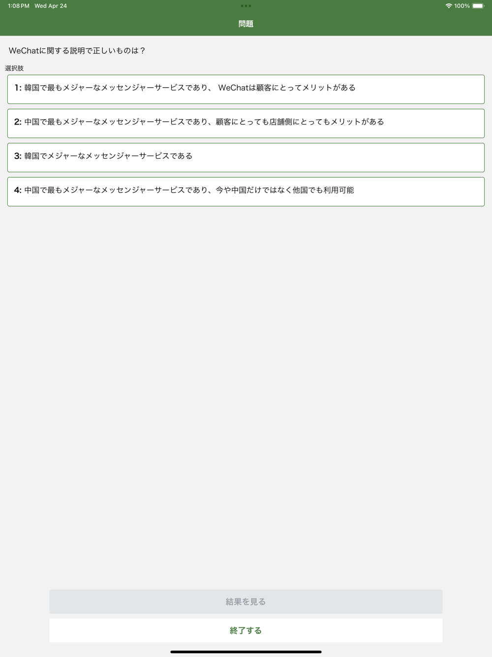1問解くごとに結果と解説がわかる方式を採用しています。