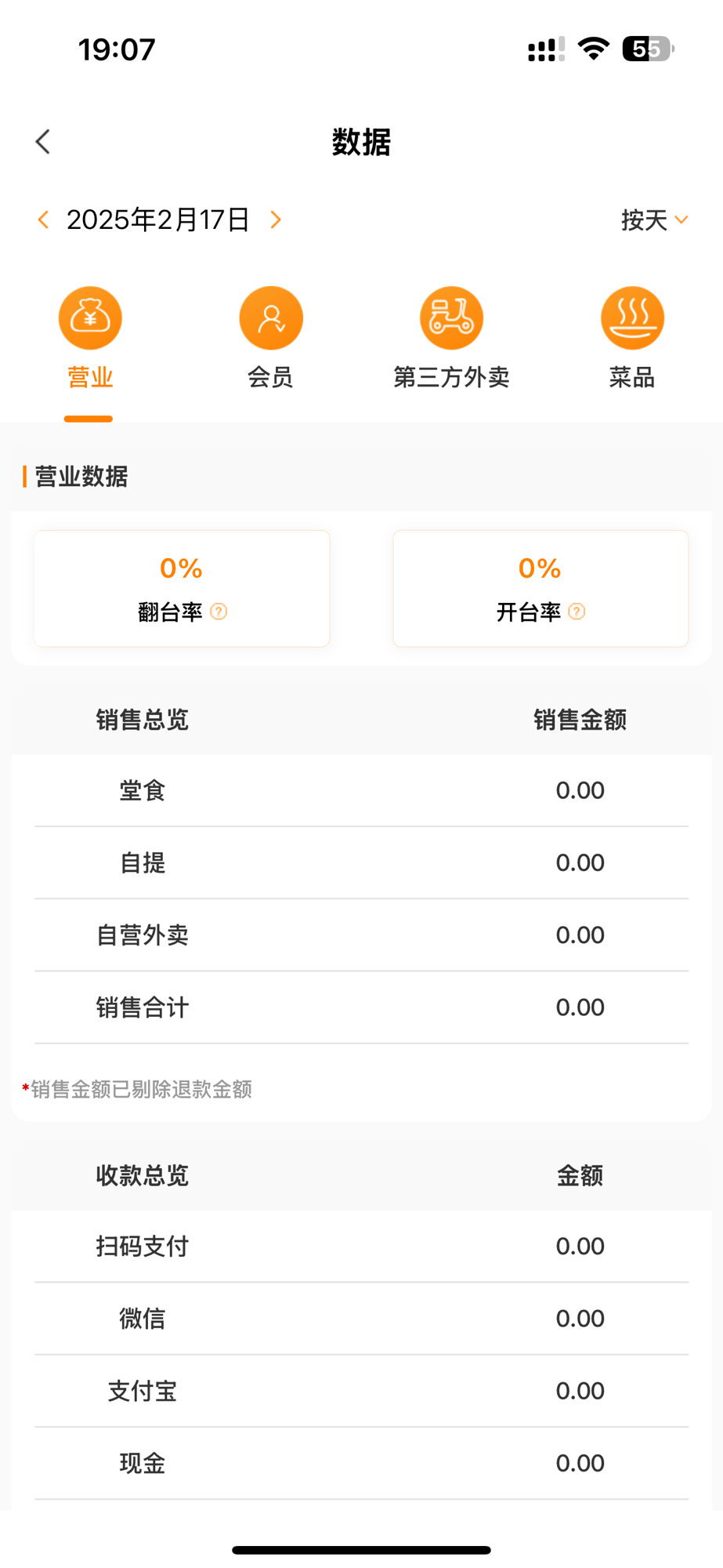 含营收统计、菜品统计、员工业绩、会员储值等丰富的营业数据。